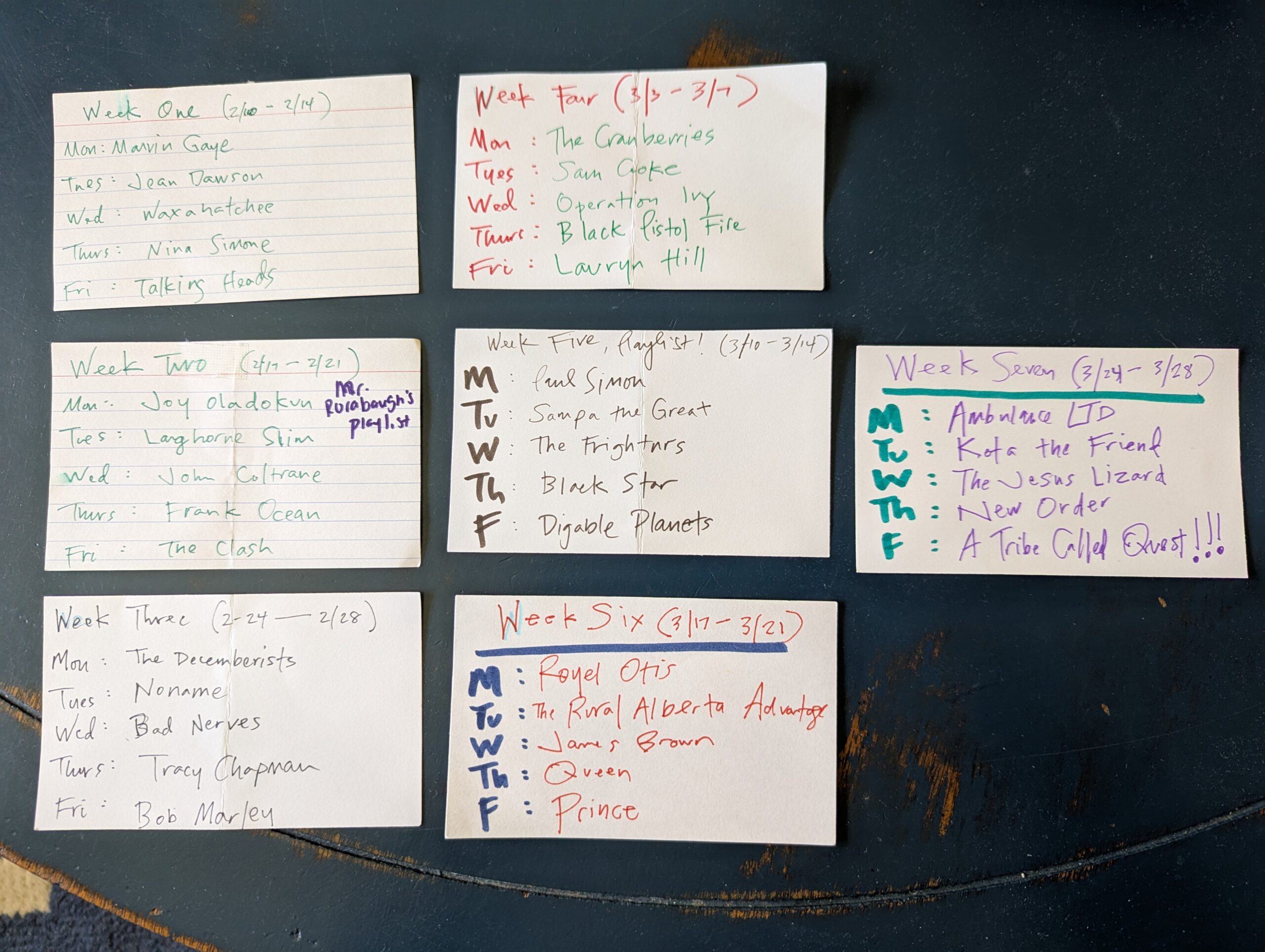Finished my treatment songs list. It’s not a definitive “best of all time” list, but it’s the artists that have been most important to me.…